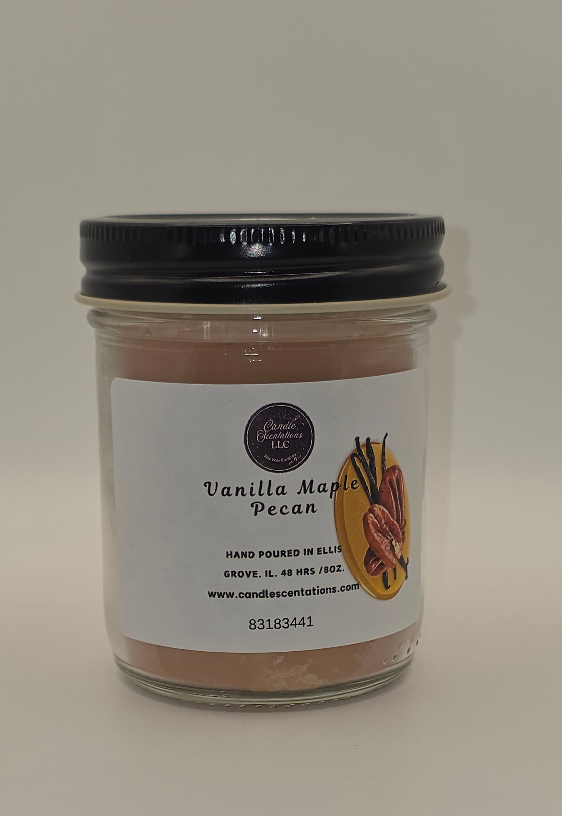 This 8oz. Vanilla Maple Pecan Candle features a nutty bouquet composed of coconut, peach, cherry flower, pink hawthorn, clove, and a sweet syrup. Enjoy a gentle combination of rich, comforting aromas in your home.