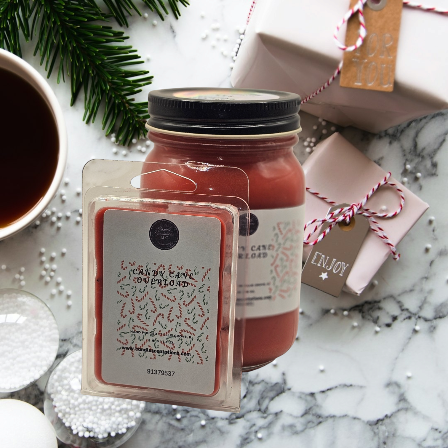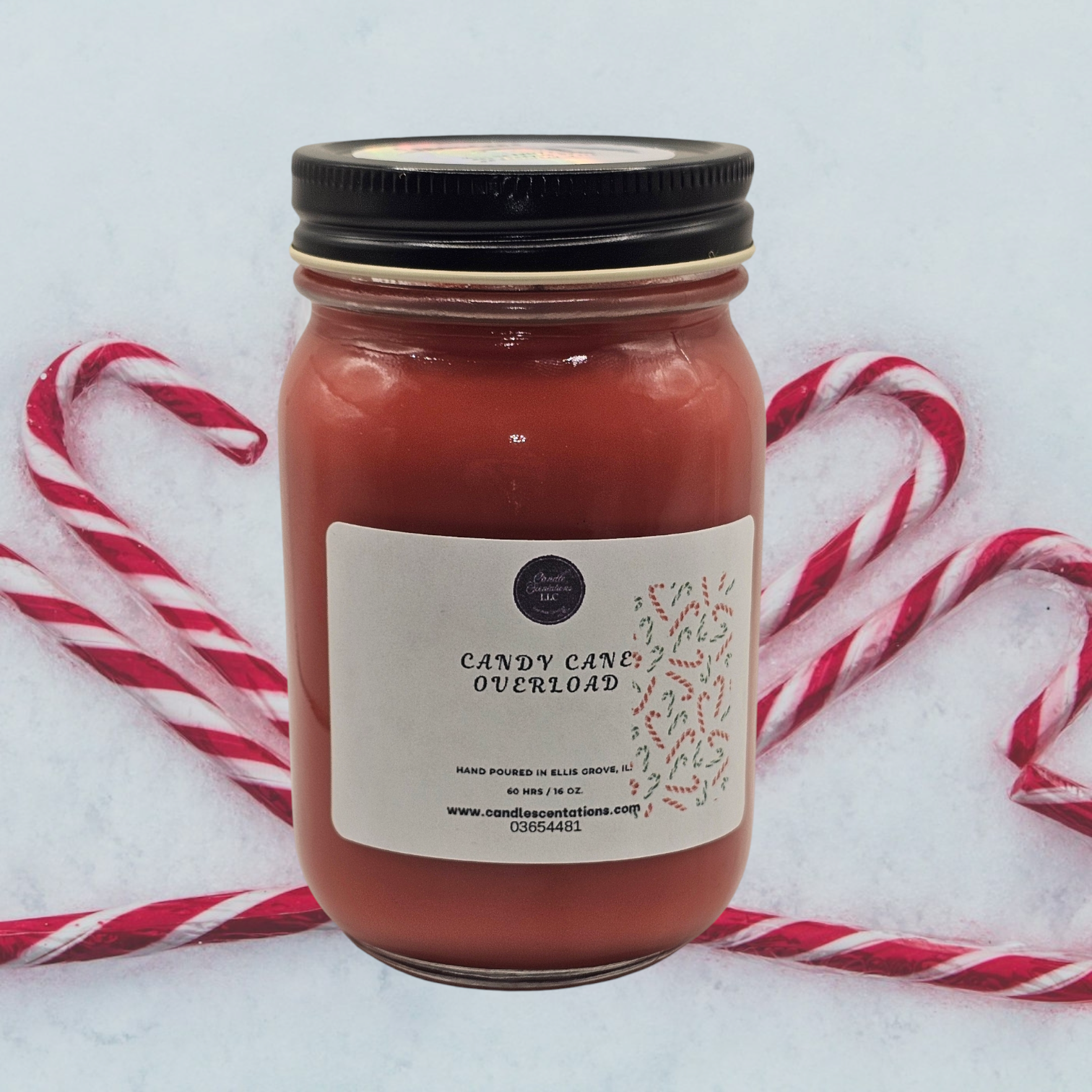 Indulge in the ultimate holiday treat with our Candy Cane Overload candle. This 16 oz. candle combines the invigorating scents of peppermint with the warm sweetness of vanilla and sugar. Get ready to elevate your senses with this delicious and cozy blend.