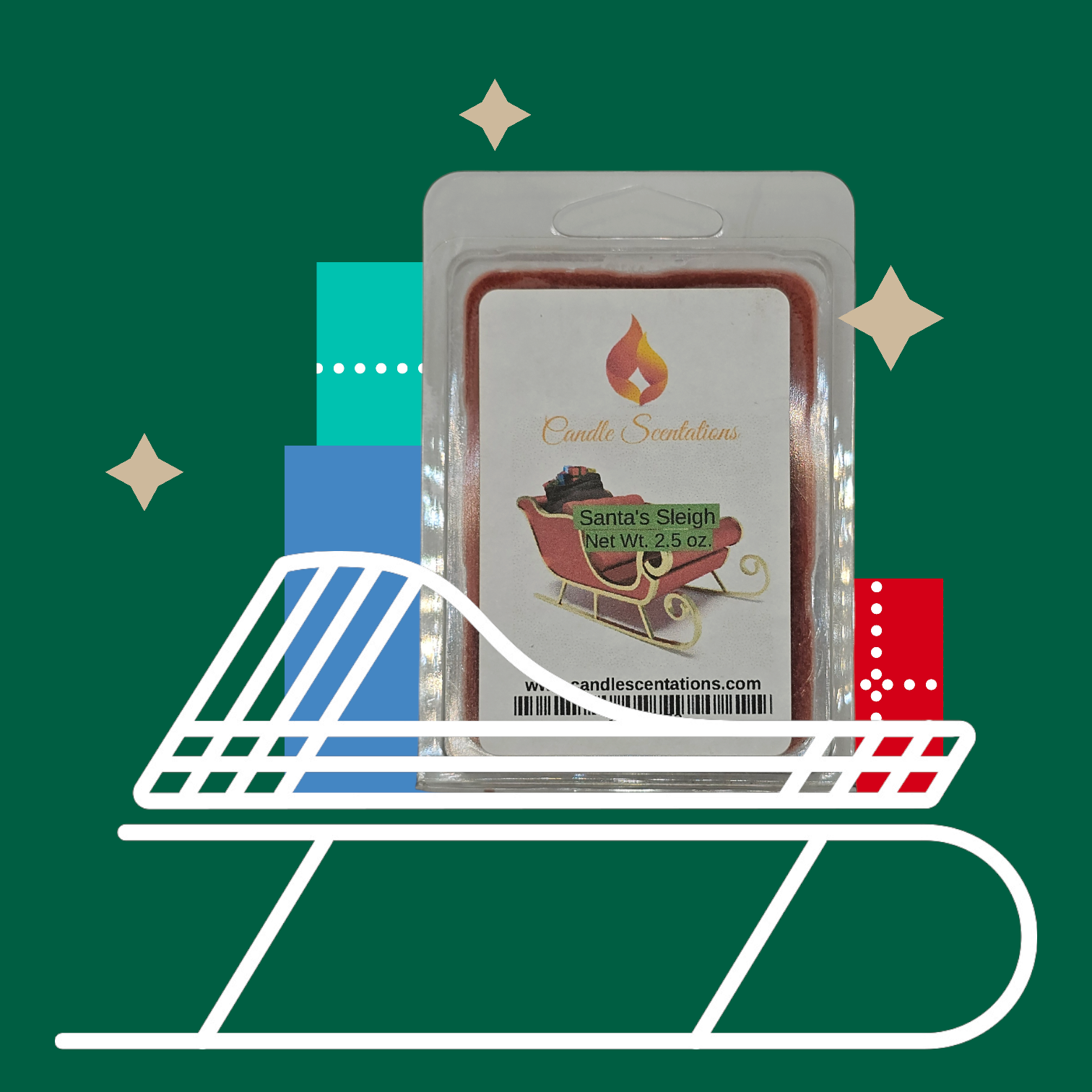 Satisfy your holiday cravings with Santa's Sleigh 2.5 oz. Wax Melt. The blend of traditional balsam leather and wax melt is sure to evoke a festive ambience in your home. Enjoy a creamy, intoxicating scent with a hint of Christmas, perfect to share with family or friends.