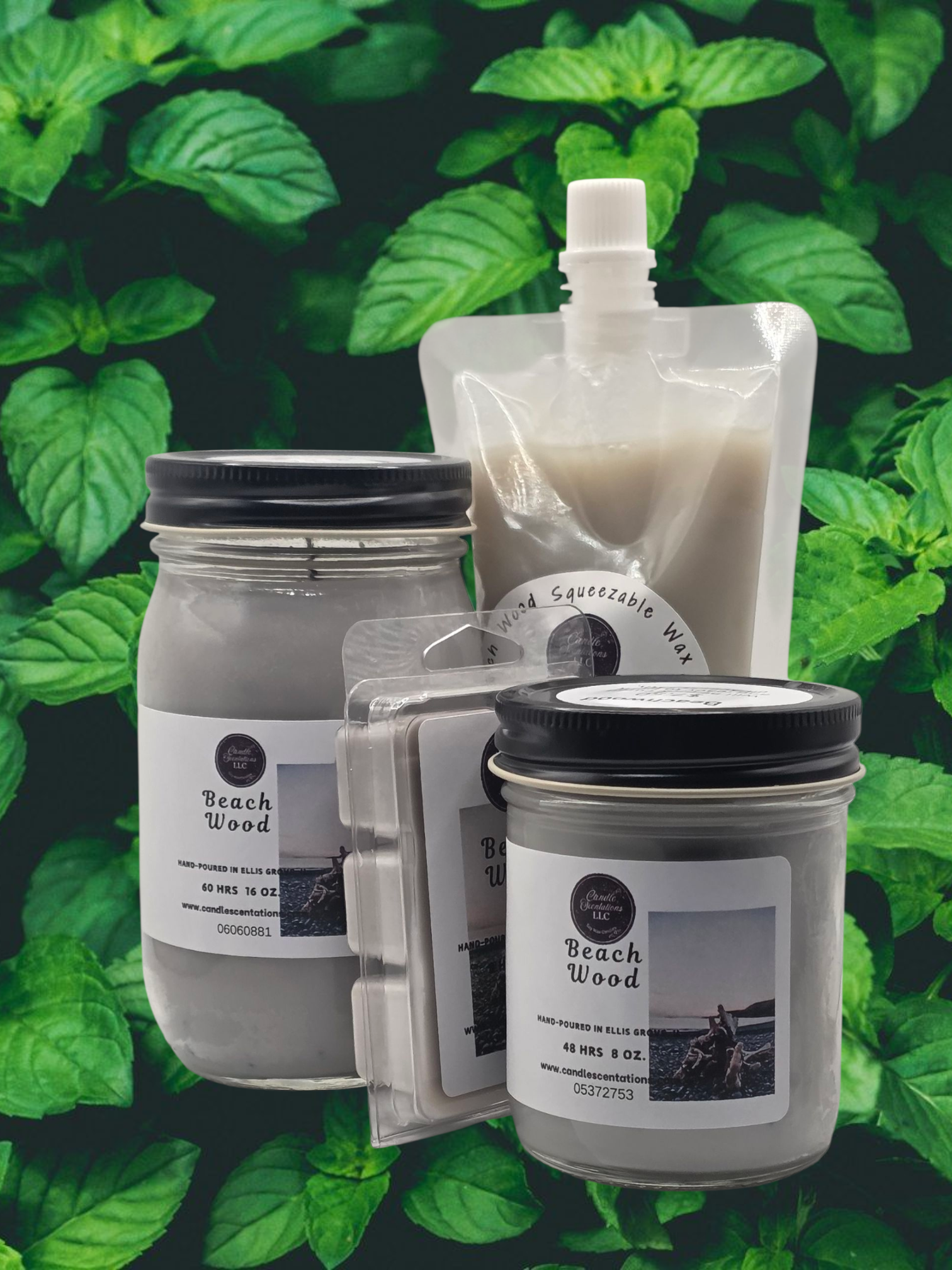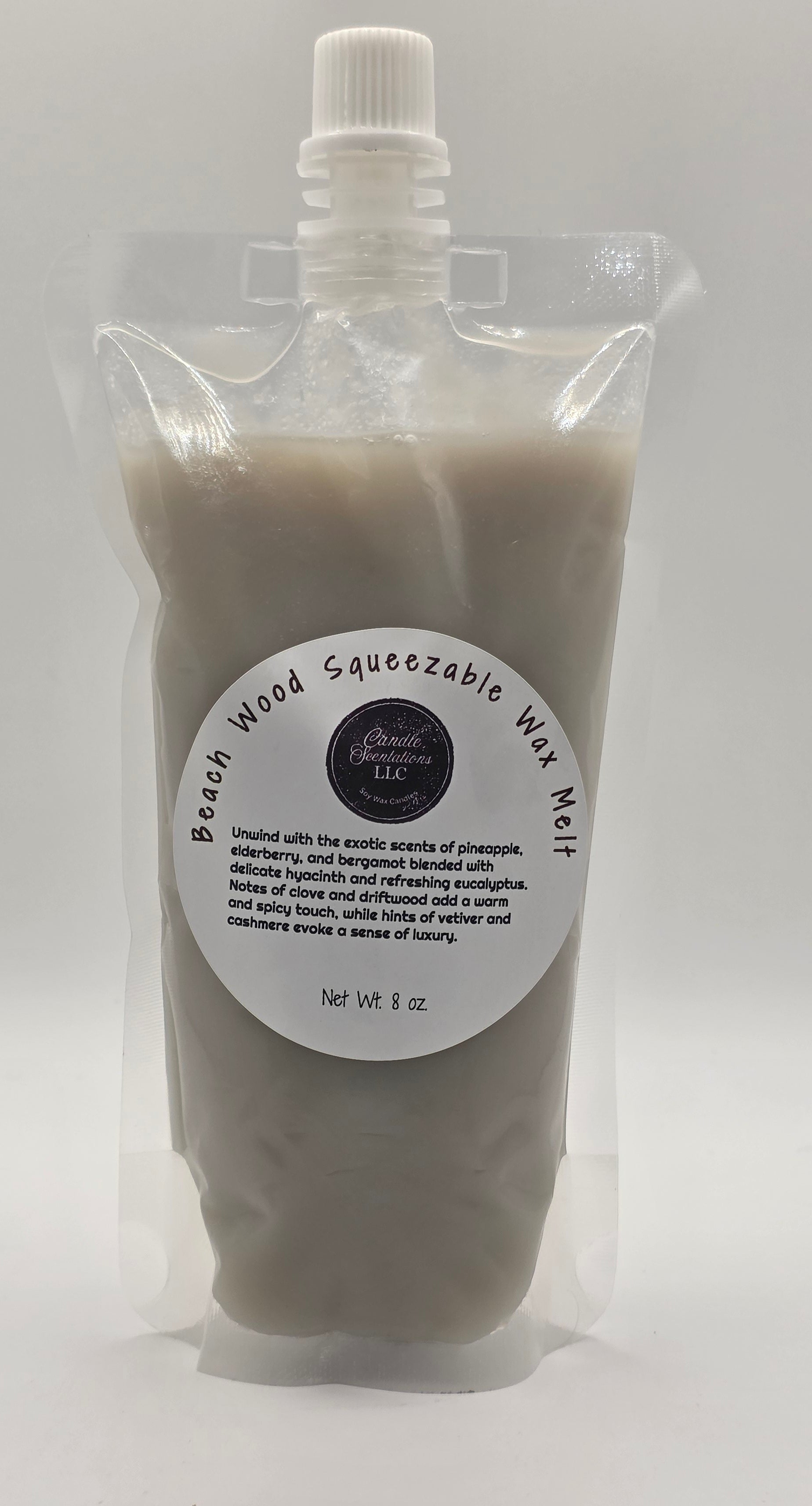 Experience the sophisticated blend of juicy pineapple, delicate elderberry, and crisp bergamot in the Beach Wood 8 oz. Squeezable Wax Melt. This tropical fragrance is elevated by fresh hyacinth, invigorating eucalyptus, and warm clove, all grounded by the rich, woody notes of driftwood, vetiver, and soft cashmere. Perfect for creating an elegant, inviting atmosphere in any space.