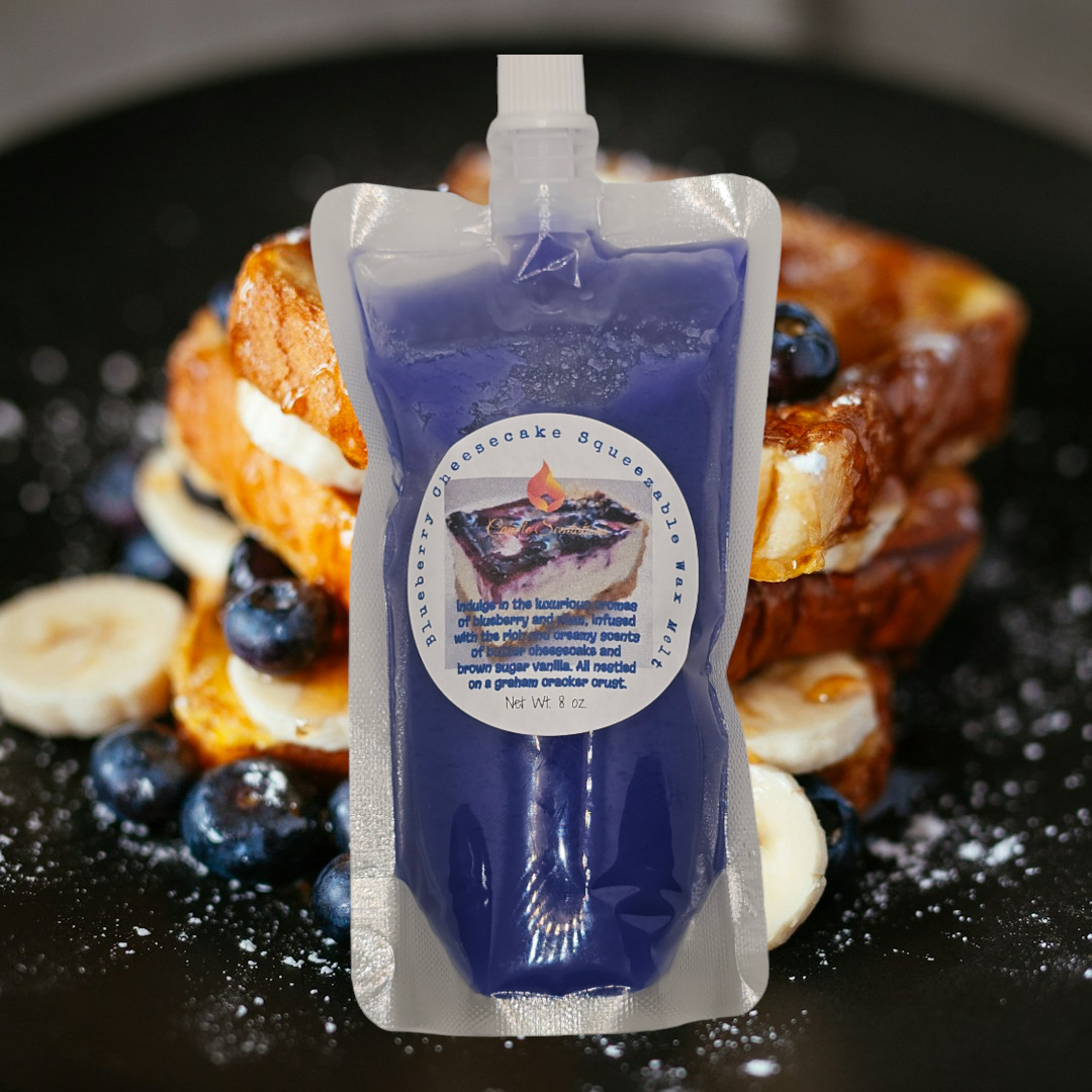 Indulge in the luxurious aromas of blueberry and plum, infused with the rich and creamy scents of butter cheesecake and brown sugar vanilla. All nestled on a graham cracker crust, our 8oz Blueberry Cheesecake Squeezable Wax Melt will fill your home with sophisticated and exclusive fragrances.