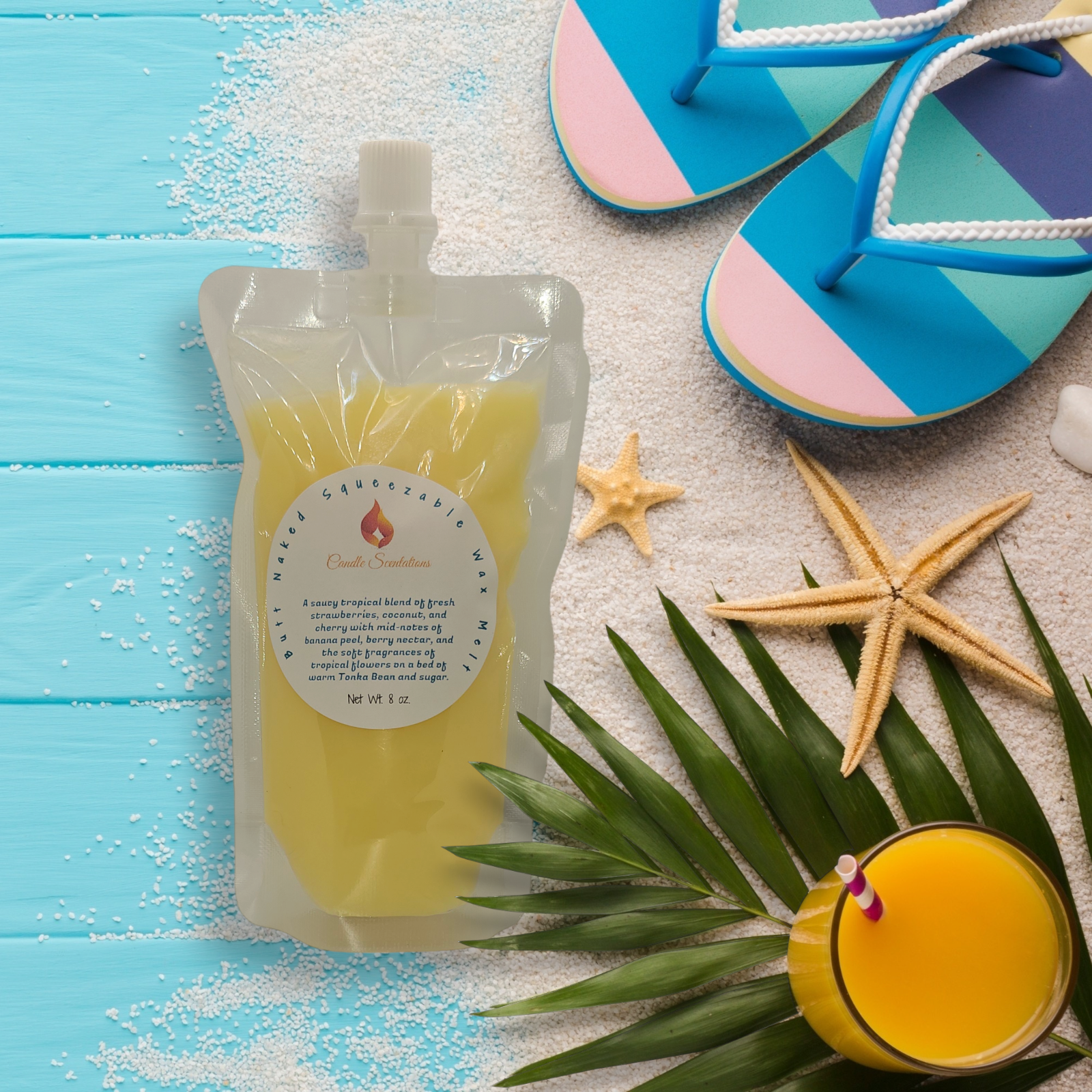 This scent captures the youth of summertime! A saucy tropical blend of fresh strawberries, coconut, and cherry with mid-notes of banana peel, berry nectar, and the soft fragrances of tropical flowers on a bed of warm Tonka Bean and sugar.