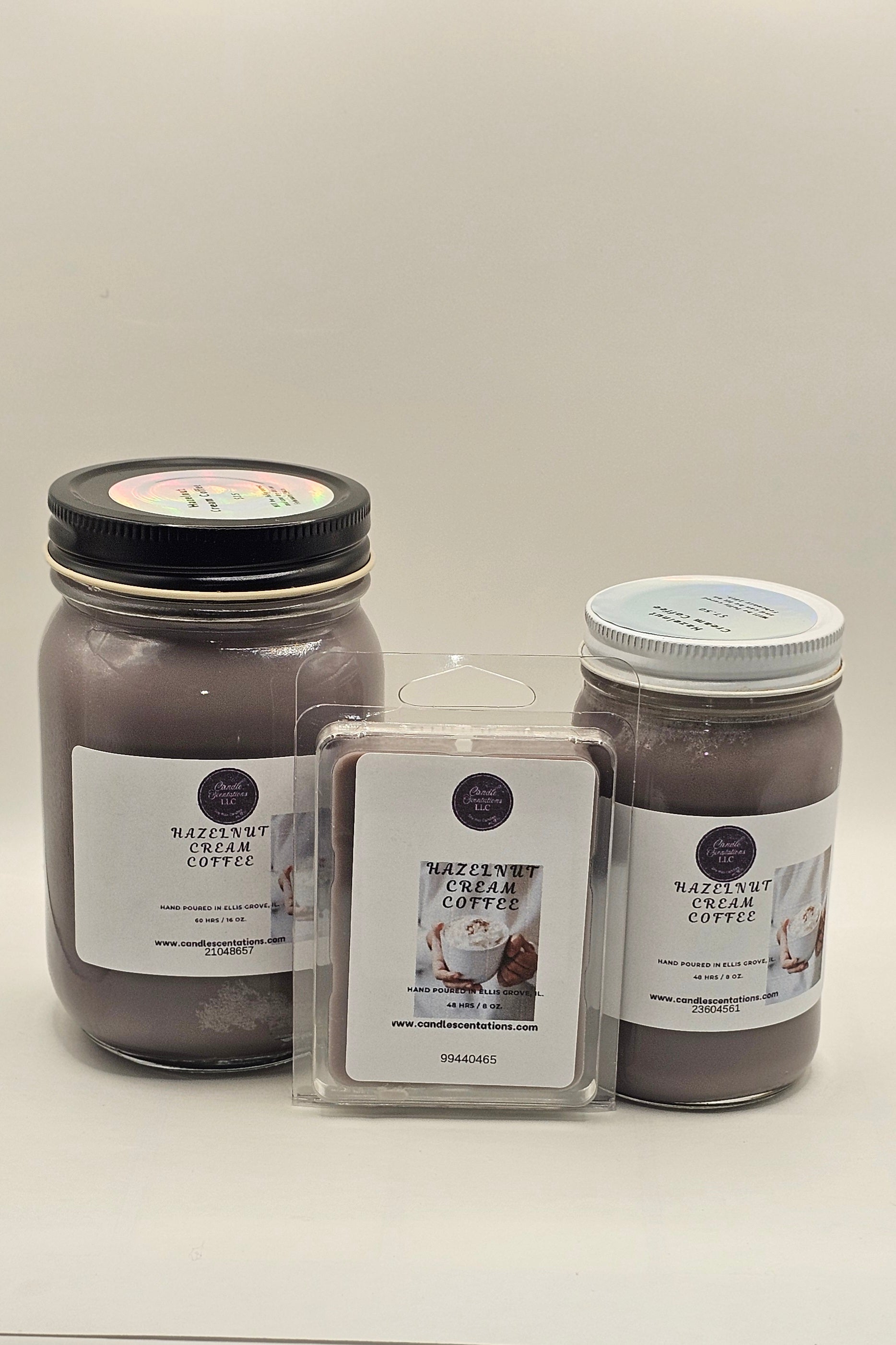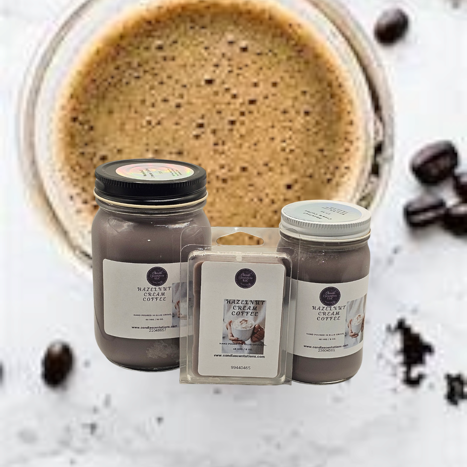 Indulge in the luxurious scent of our Hazelnut Cream Coffee 16 oz. Candle. Our expertly crafted blend of sweet and nutty notes creates the perfect aroma, reminiscent of a freshly brewed cup of creamy coffee. Immerse yourself in the rich scents of Arabica coffee beans, creamy vanilla, and nutty hazelnuts, accented by real whole coffee beans. Elevate your senses with every use.