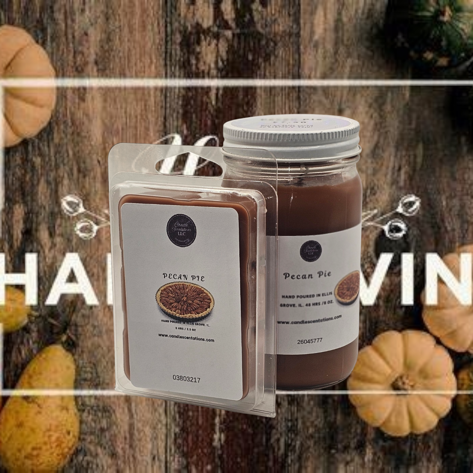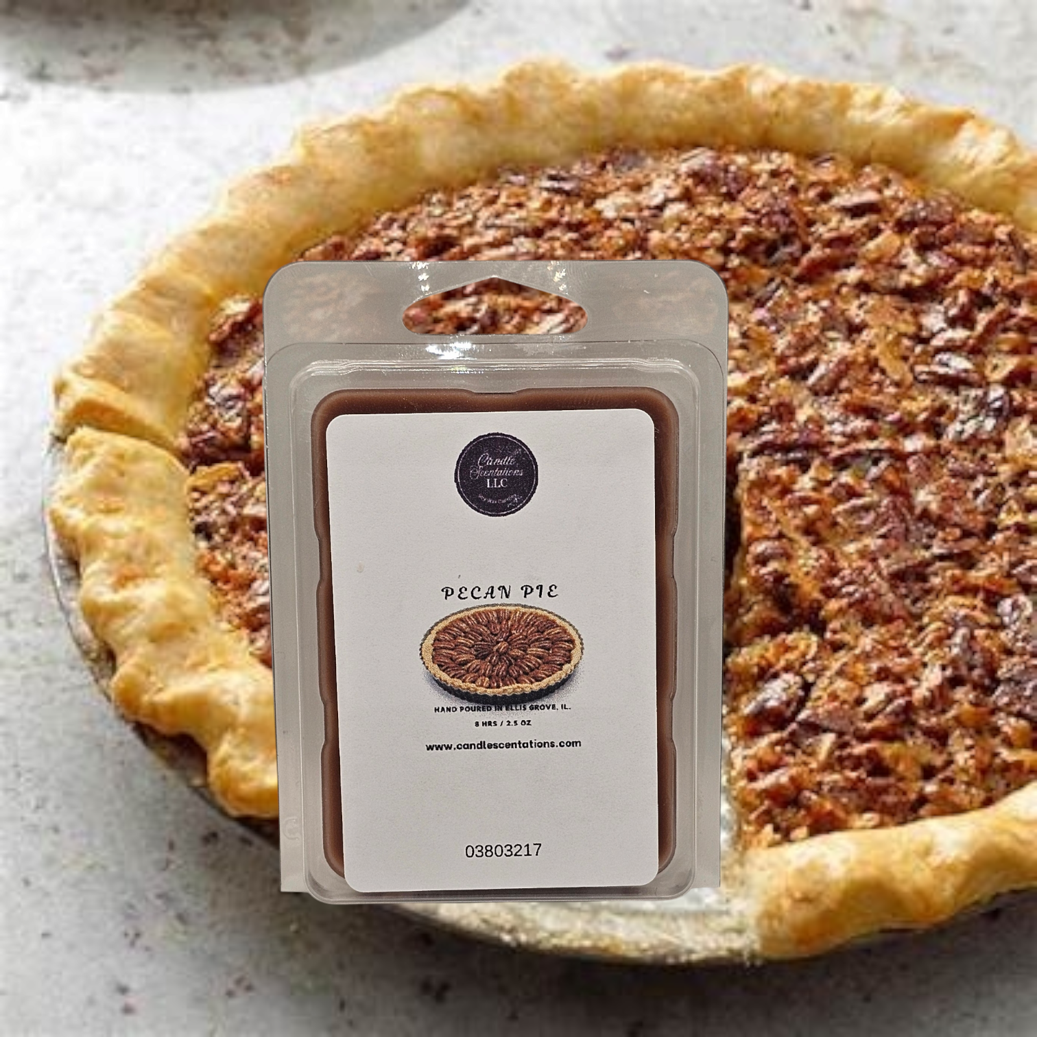 Indulge in the rich and comforting aroma of our Pecan Pie 2.5oz. Wax Melt. Transport yourself to your grandmother's kitchen with notes of butter, roasted pecans, and sweet vanilla. Savor the warm and homey scents of pie dough and sugar. The perfect addition to your home for a touch of luxury.