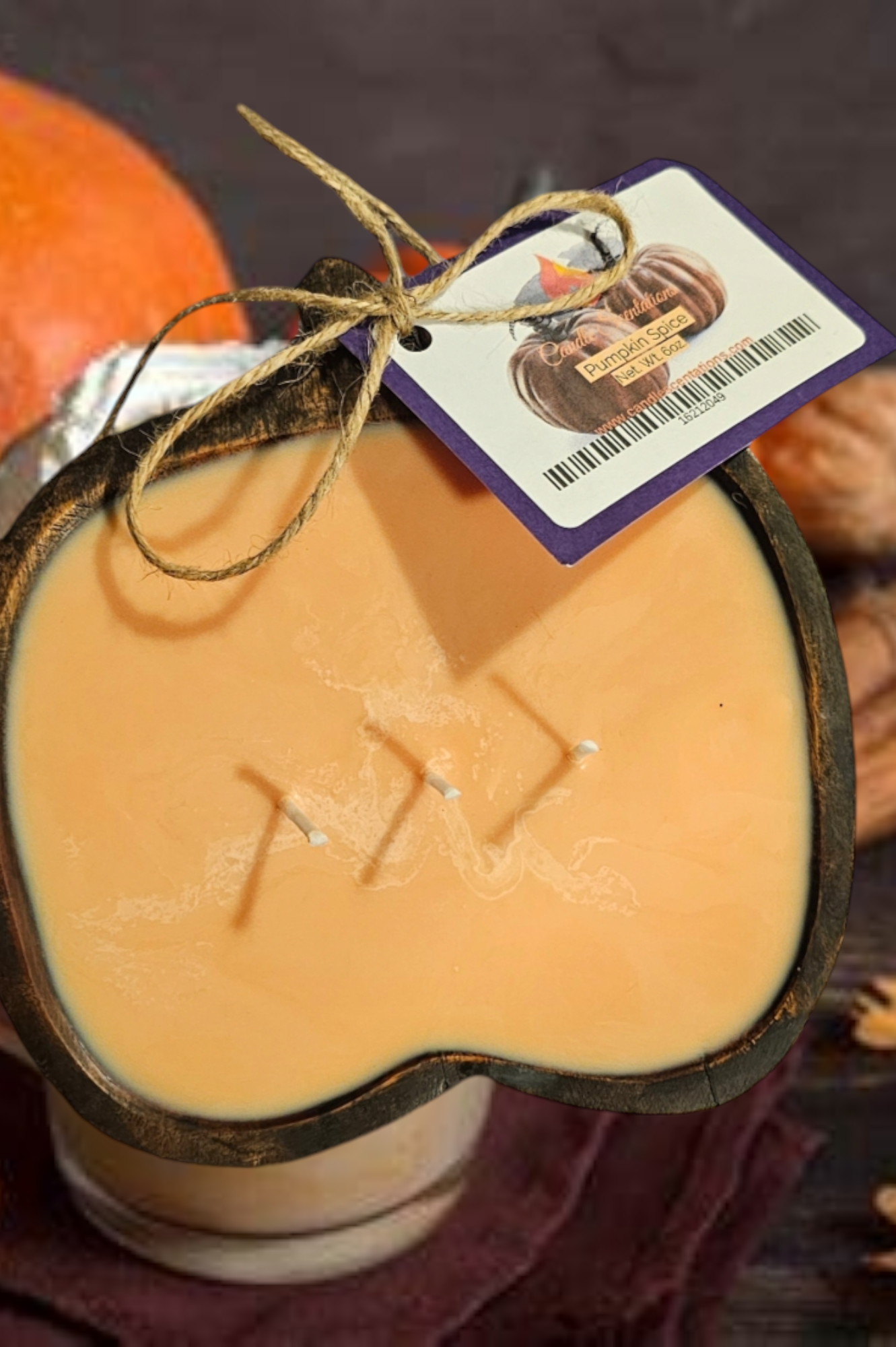 Pumpkin Spice Pumpkin Dough Bowl with 3 wicks 6oz.