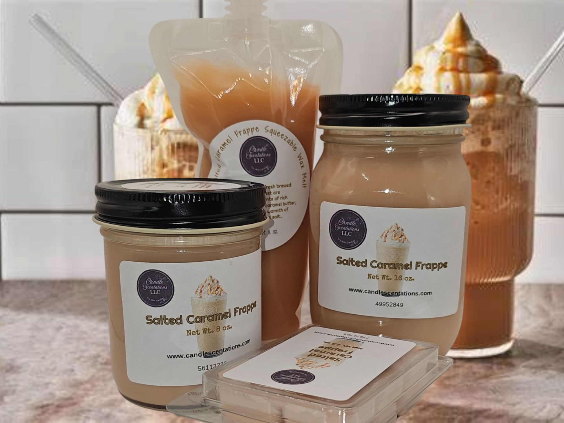Indulge in the ultimate sensory experience with our Salted Caramel Frappe 8 oz. Squeezable Wax Melt. Notes of coconut, fresh brewed coffee, and lemon zest are complemented by hints of rich cocoa and creamy caramel butter, all enveloped in the warmth of brown sugar and sea salt. Elevate your space with this luxurious scent.