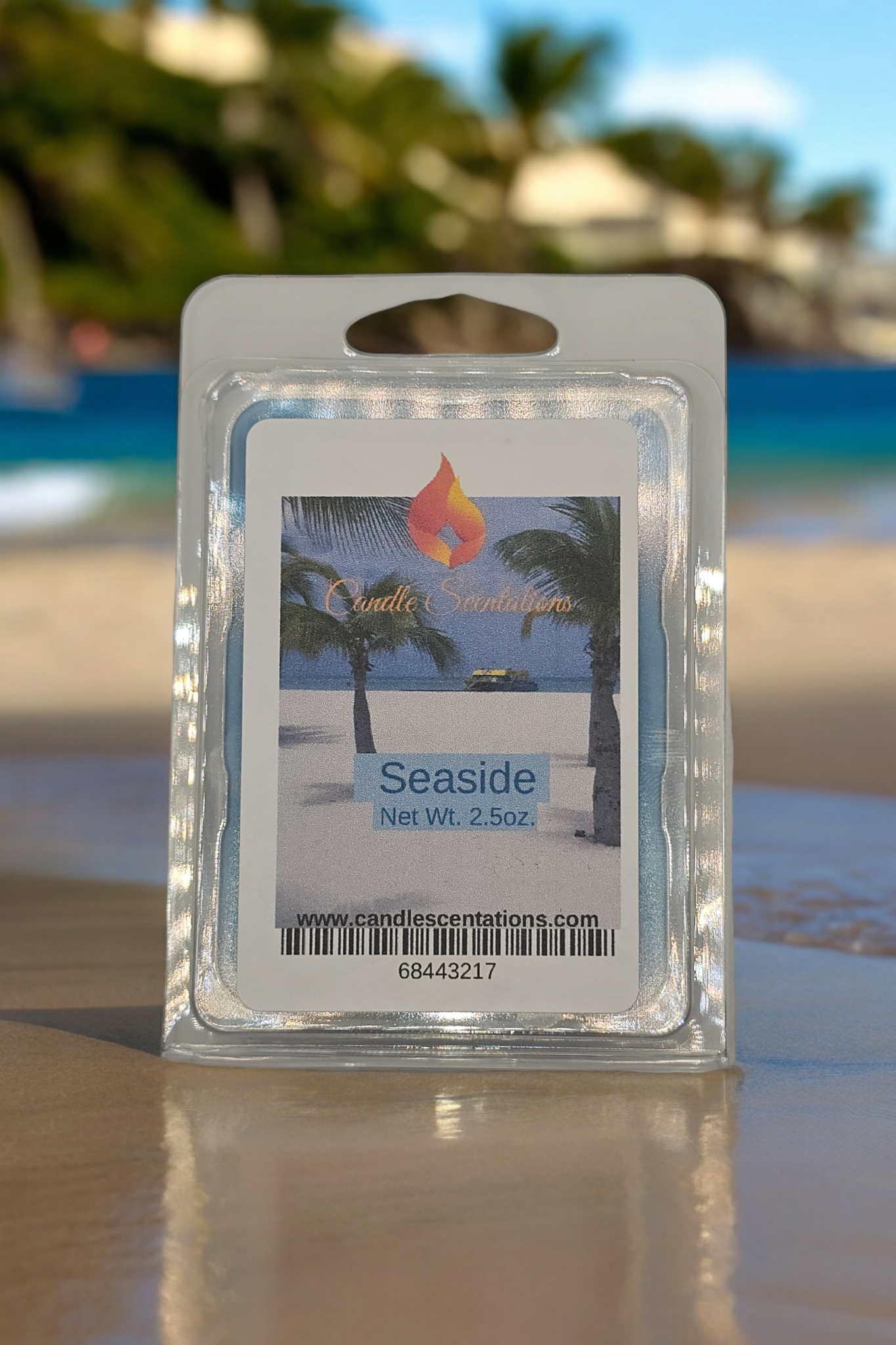 Introducing Seaside, a luxurious 2.5 oz. wax melt that will transport you to a coastal paradise. It has notes of refreshing lime, juicy peach, and invigorating bergamot, complemented by the sea breeze of marine notes and the sweetness of melon. Enhanced with delicate hints of rose and geranium, and finished with a base of sensual musk. Escape to the seaside with Seaside wax melt.