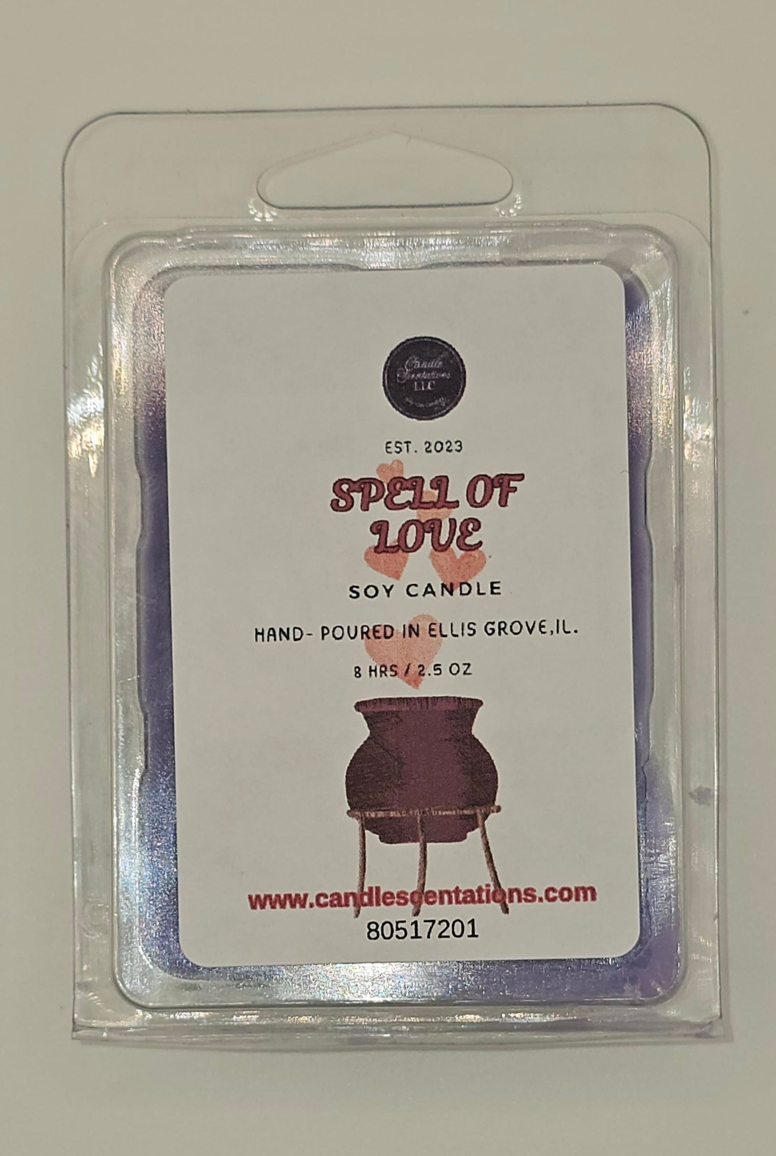 Indulge in the intoxicating aroma of Spell of LOVE. This luxurious 2.5 oz. wax melt features a feminine blend of peach and apple blossom, complemented by smooth coconut milk and delicate jasmine and hydrangea blossoms. Finished with notes of light vanilla, white musk, and powder for a delicate and alluring scent experience.