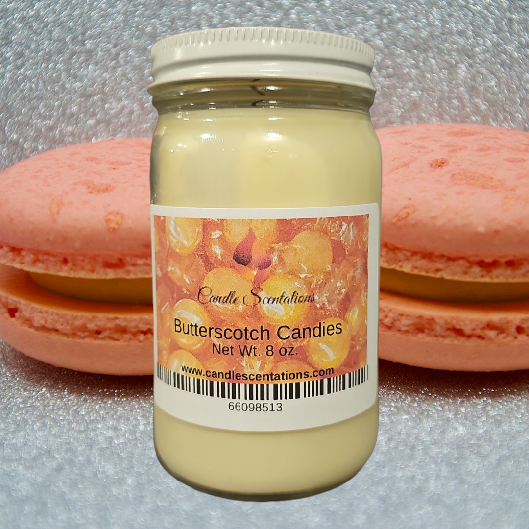 Enjoy the sweet aroma of Butterscotch Candies with this 8oz. candle. The combination of creamy caramel and rich buttery notes make this a classic crowd pleaser. With a long-lasting burn time of up to 55 hours, you can enjoy the scent for many nights. Made with a soy blend wax for clean burning and a cotton wick, this candle is sure to produce a welcoming ambiance.