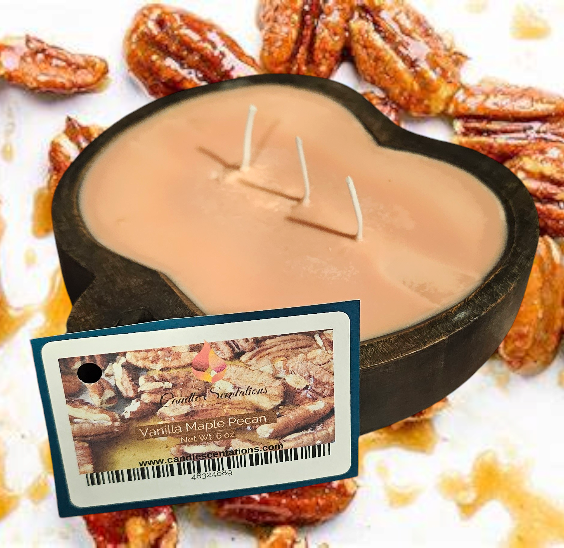 Introducing the Vanilla Maple Pecan Pumpkin Dough Bowl 6oz. Enjoy an exquisite nutty bouquet of coconut, peach, cherry flower, pink hawthorn, clove, and sweet syrup that creates a comforting aroma. Relax with this luxurious combination of rich scents in your home.